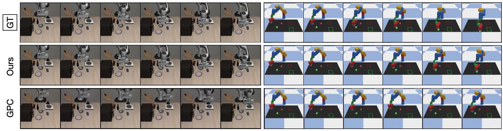 Visual comparison of planning outcomes between ForesightIL and baseline methods. By leveraging latent-space rollouts and predictive reasoning in a learned world model, ForesightIL consistently selects goal-directed actions, leading to more successful task completions across diverse scenarios.